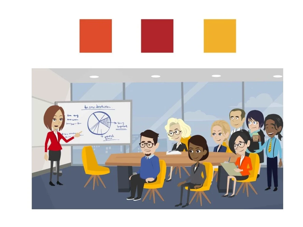 Business-friendly characters engage the audience with humor, emotion, and a wide range of actions. This unique style is especially well-suited for internal employee training. Settings, characters, and props can be customized with your brand colors.